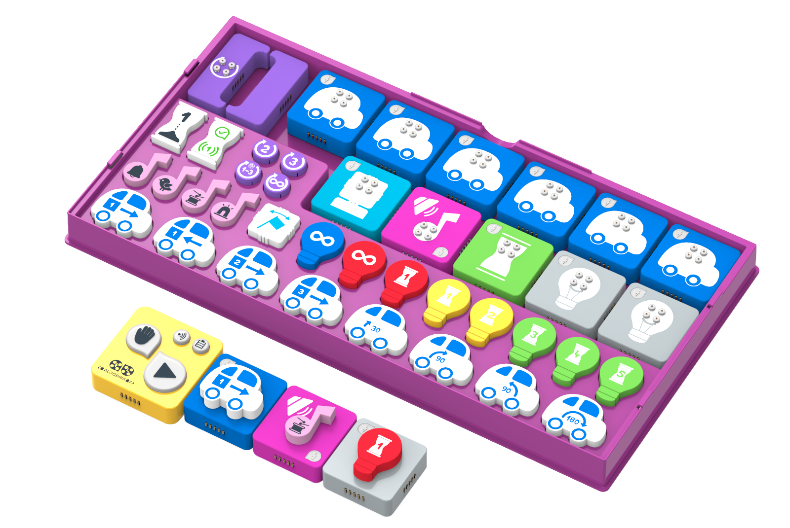 З програмою AlgoBuddy кожна дитина дитсадівського віку діє як маленький інженерпрограміст, допомагаючи AlgoBuddy пересуватися, загорятися, реагувати на навколишнє середовище і взаємодіяти з різноманітним унікальним контентом, який забезпечує захоплюючу основу для AlgoBuddy для виконання різних завдань.